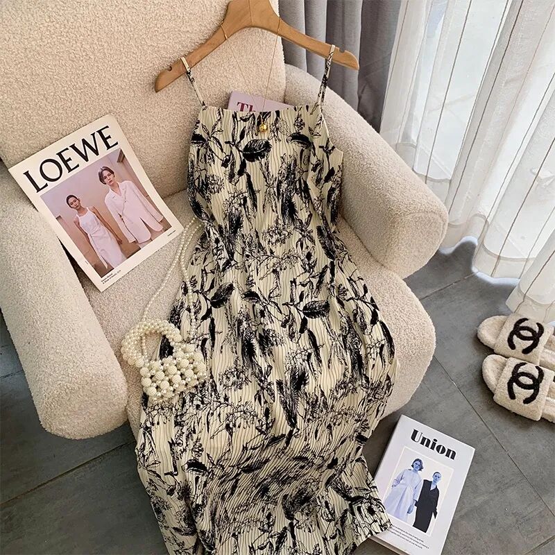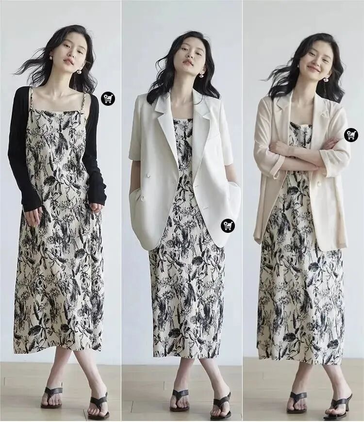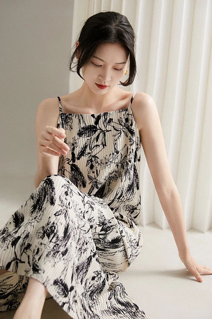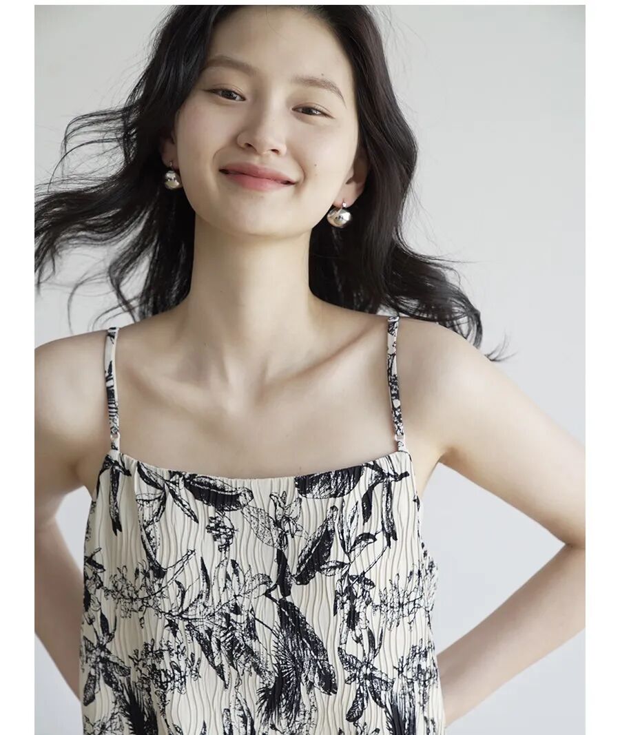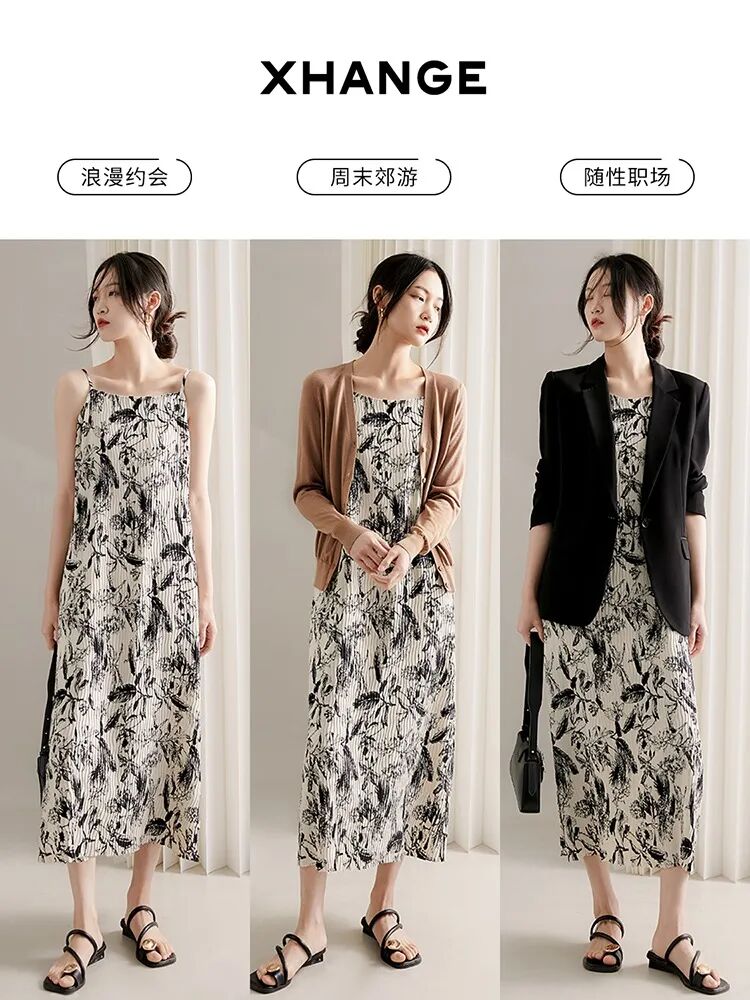 水墨纹理是东方代表的古典元素,素雅的晕染色彩简约又唯美,幽静气息顺着长裙飘荡,夏天穿再合适不过了。