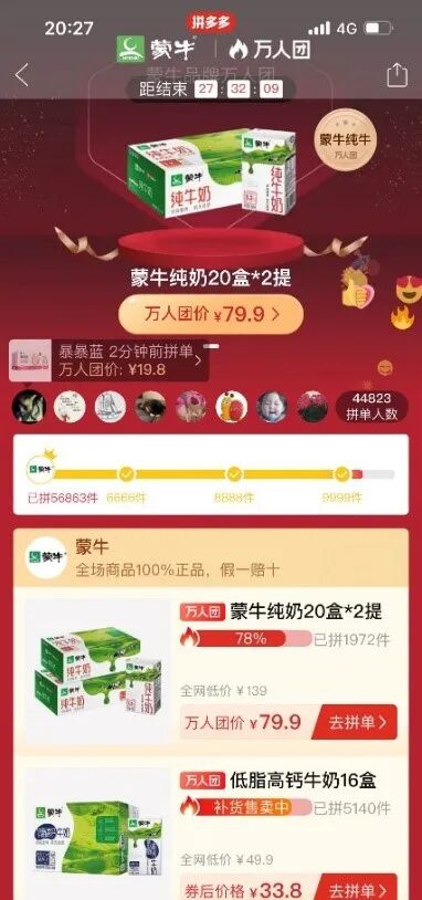 6月16日至18日,蒙牛官方旗舰店全系产品也悉数登陆平台品牌万人团。在此之前,蒙牛产品在大促首日即卖出468万盒,单品单日销售额超过700万元,环比日均增长1300%+,刷新品牌单日销量历史新高。在随后的儿童节,蒙牛官方旗舰店发货量一度超过11万单。