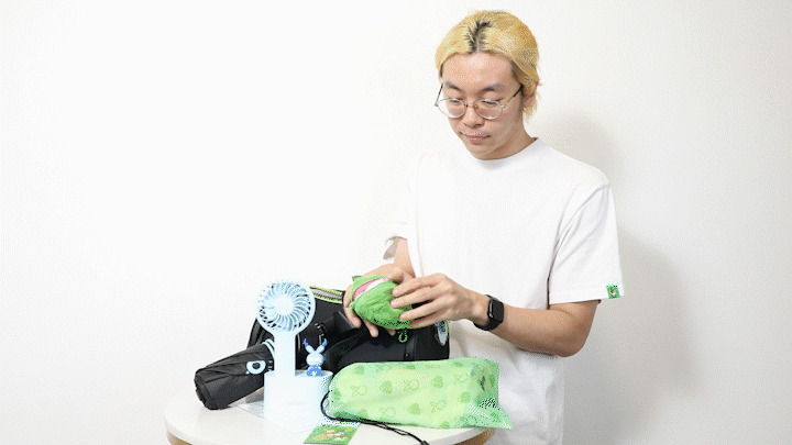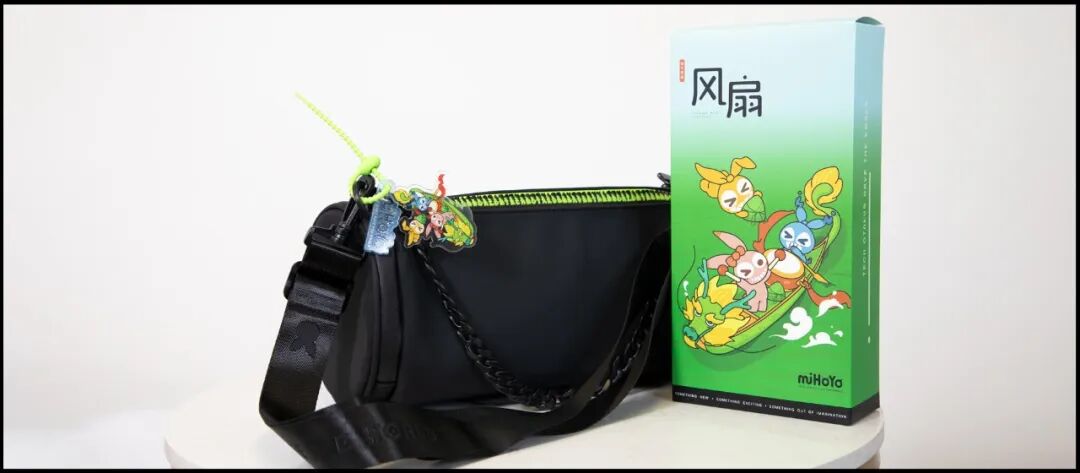 首先是一个黑色斜挎包,撞色荧光绿,时尚完成度有。而且这个包包还是防水的,干湿分离的设计,可以用来放伞,爱了。另外还单独送了一个小风扇,属于是办公室夏季硬通货了。