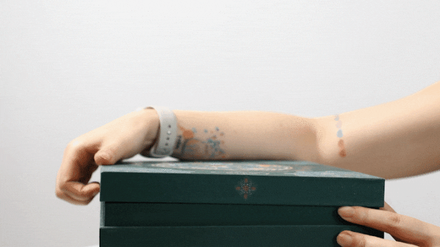 冰粽礼盒的包装盒也暗藏心机,每一个粽子对应的包装卡片都是变温设计,用手掌心按压片刻就会有不同的暗语浮现!