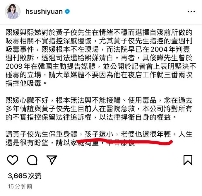 大S还是一如既往的话事人,对外刚的很,直接放话:“请黄子佼保重身体,孩子还小,老婆也还很年轻。”