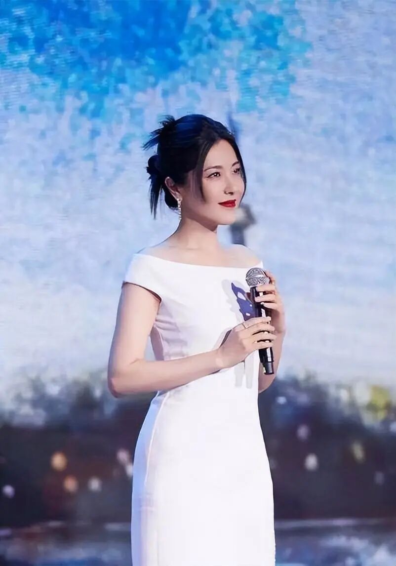 她身穿一件剪裁简约的白色收腰连衣裙,配上十分端庄的盘发,即使这样的简单装扮,她也能展现出别样的风格和魅力,成为人群中的一道美丽的风景。