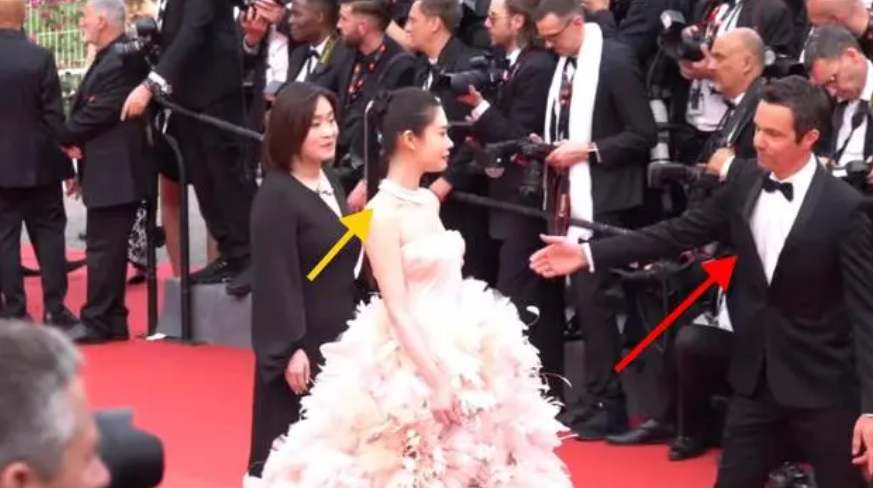 杨紫琼只能以一种“尴尬但仍然保持礼貌”的微笑,跟随现场工作人员的引导离开红毯。