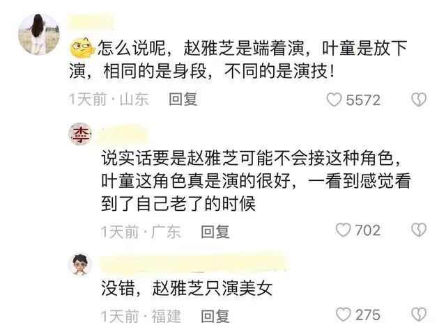网友们还就此探讨起了两人的演技,称赵雅芝是端着演,叶童是放下演,可见对叶童的演技有多认可了。