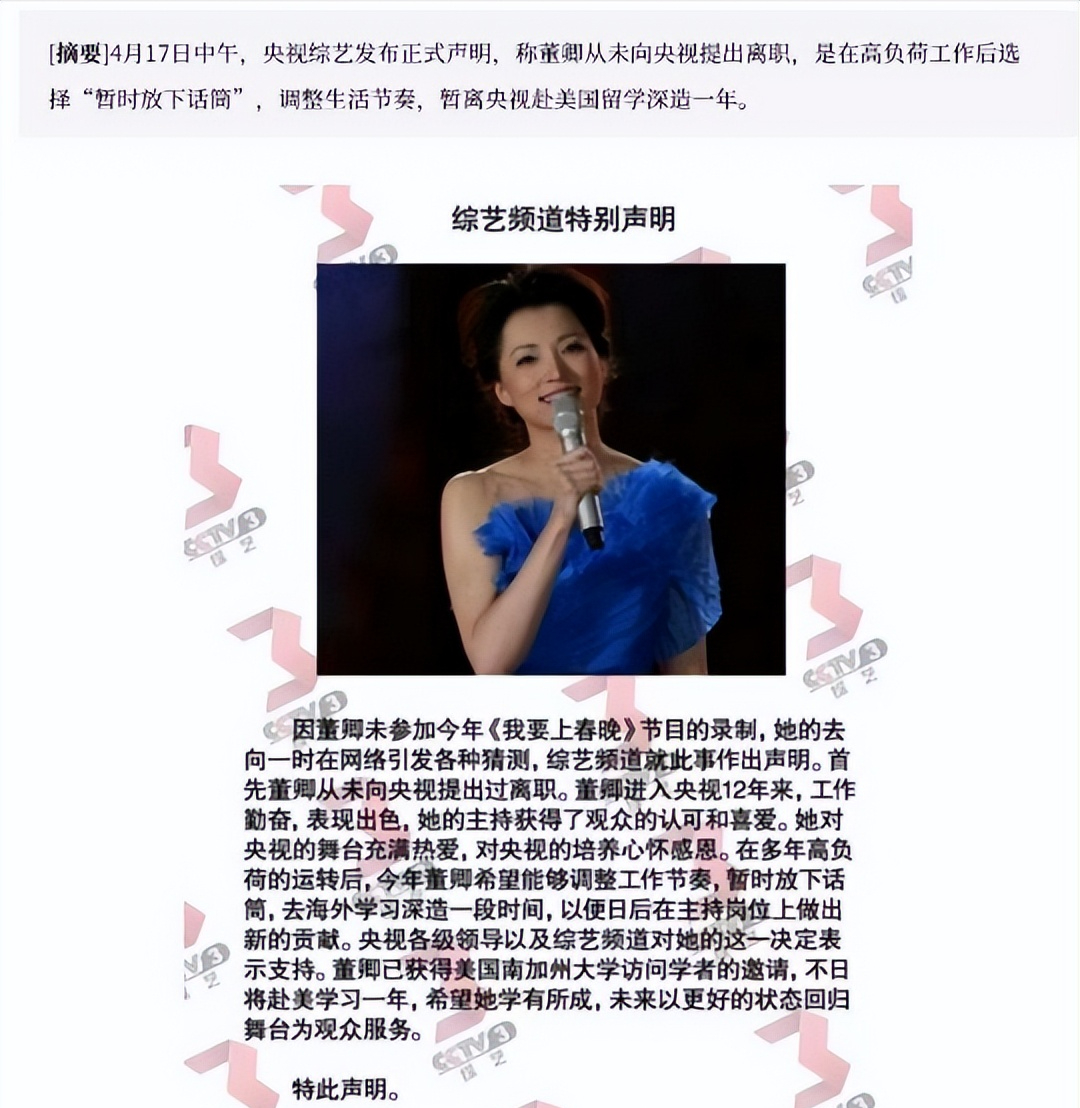 然而,央视很快辟谣,声称董卿并未辞职,只是在繁重的工作之后暂时“放下话筒”,去美国深造。这符合董卿一贯的"爱学习"的性格,一度让很多人松了一口气。