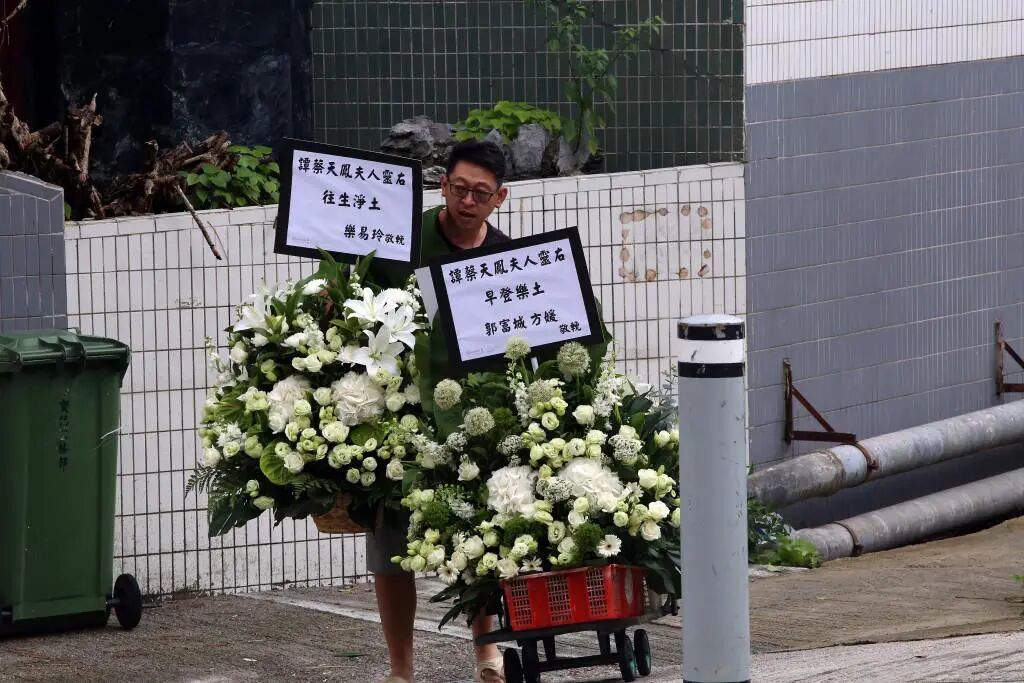 在6月18日,蔡天凤的亲属在大围宝福纪念馆举办了她的追悼会。被誉为“天王嫂”的方媛作为蔡天凤的好朋友,与她的丈夫郭富城一起,赠送了寓意“早登乐土”的花牌,表达了她们对好友的深深思念,也寄寓了希望好友能早日得到安息的祝愿。