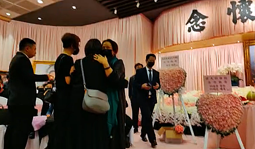 谭家的成员坐在灵堂的第一排,蔡天凤的婆婆(即Chris的母亲)最为伤感,多次与来宾拥抱并大哭,Chris的父亲谭泽均也多次抹泪。
