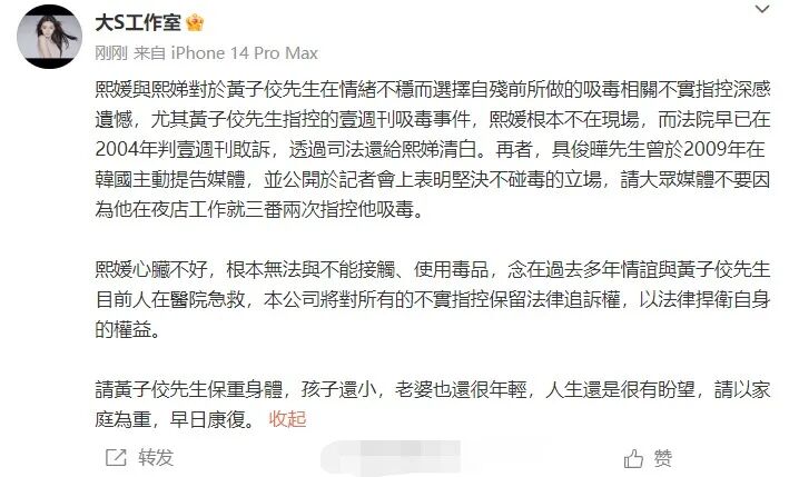 这种事发生后肯定恨不得论秒的撇清关系,之前大S因为大半年没露面再加上现任老公的形容,前面又被曝出高额电费的疑问(当时就有人觉得这电费足够在家培育违禁品了),因此被质疑过是在家吸D吸废了,所以没办法出门。