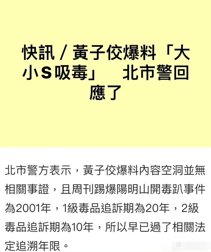 因为黄子佼被指控X骚扰17岁女生,还伴有强吻、拍下裸照这类行为,爆料出来后没多久他本人就发视频道歉,内容里认下这个事实外还提到各种往事,其中包括他母亲早年出轨对他带去的童年阴影,跟小S谈恋爱期间发现女友、姐姐大S和当时的男友(就是现在的二婚老公)都有吸D的违法行为,自己也被带入弯路,还提到了几人曾在韩国有过通场吸D的情况(不过吸D的问题WW官方给出了回应,称黄子佼的爆料如是指的二十年前,那已经过了追诉期,所以不会因此开展进一步调查)。