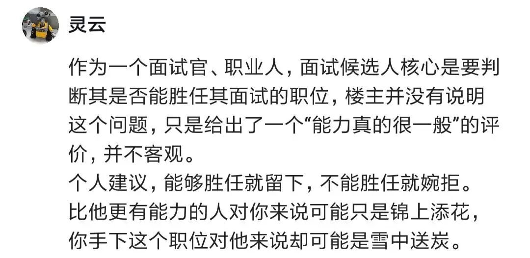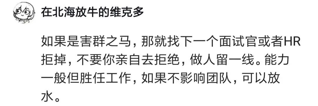 一名面试官说,面试候选人的核心是要判断其是否能胜任面试职位,如果能胜任就留下,不能就婉拒。