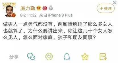上海复瑞投资有限公司董事长兼复旦大学EMBA校友会理事施力勤对此就公开表示反感,怒斥其”一点做男人的勇气都没有”。