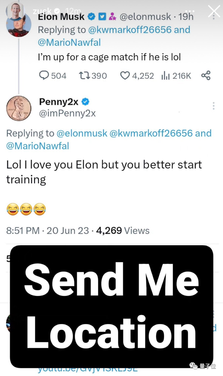 就当大伙以为马斯克只是开个玩笑时,扎克伯格竟然当真了。此情此景之下,马斯克也面无惧色,快速给出了约战地址: