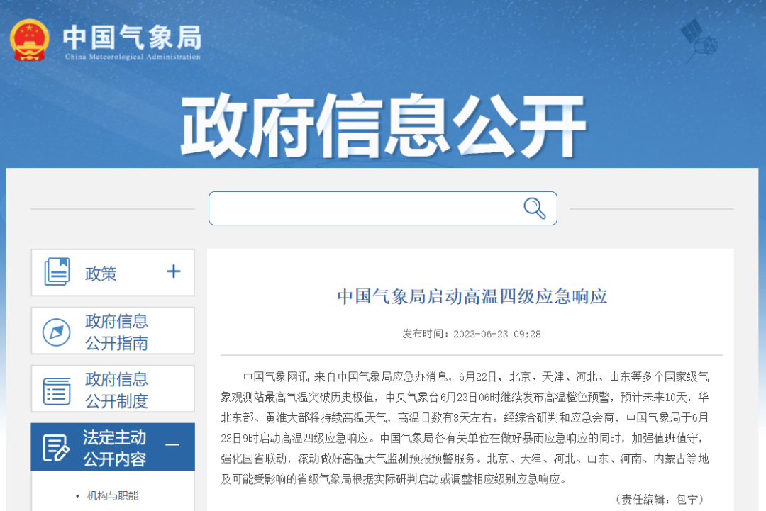 导读:中国气象局于6月23日9时启动高温四级应急响应。