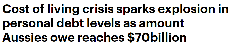 与此同时,由于利率上升,抵押贷款持有者面临更高的还款,澳人的个人债务已经堆积如山。