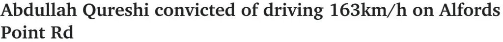 1月14日晚上11点左右,一名警察发现Qureshi以每小时163公里的速度沿着Alfords Point Rd行驶。车上还有两名乘客。