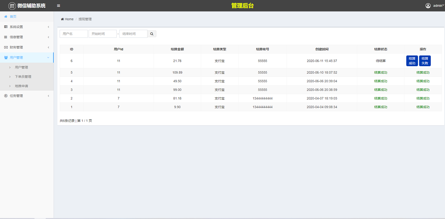 3.3 提现处理 用户明细功能