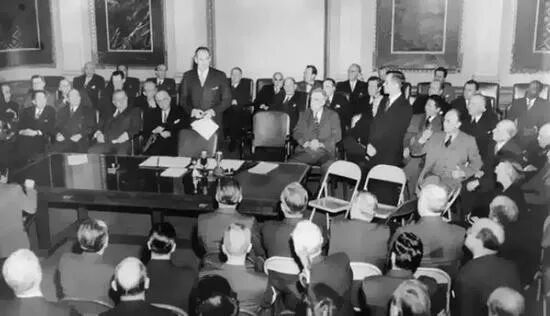 美国趁热打铁,在二战还没结束的情况下,邀请44个国家首脑开了一个会议,语重心长说:
