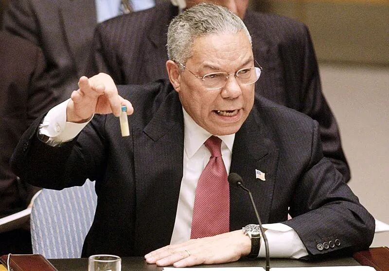 于是,美国前国防部长宣称「伊拉克拥有大规模杀伤性武器」,并在大会上拿出一管(疑似)洗衣粉进行佐证。
