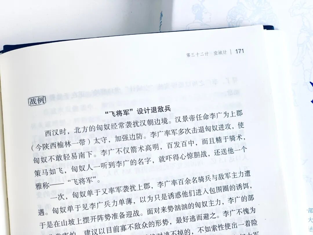 要知道这些流传千年的谋略经典,不仅是权谋之书,还有着丰富的历史内涵和现实内涵。当你真正读懂,就会发现,原来历史是如此吊诡,一切权力斗争的背后,暗藏着中国文明多少玄机。为了保证内容严谨、阅读精彩,整套书历时3年才得以完成。作者团,汇集黄朴民、陈蒲清、孙建民、马瑞等专业历史学者。他们用接地气+实用性的解读视角和方式,带我们领略中国千年的成事智慧。每一篇,都配有导读+原文+注释+注解+历史典故解析。比如讲“空城计”,作者先用一篇导读,为我们讲解此记的由来。用“诸葛亮用2500兵士巧退15万大军”“飞将军李广设计退匈奴”等历史战例,做解析。