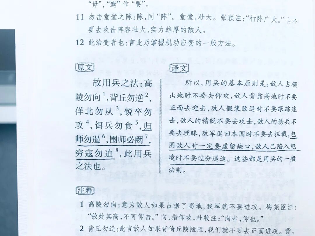 《六韬》记录了姜子牙与周文王、周武王的对话,教你洞察人心,懂得如何识人、应对各种交往。事业、家庭、婚姻、情商、教育……大部分人生课题,都能从中找到处事之法、应变之策。这句话出自《孙子兵法·军争篇》,意思是对濒临绝境的敌人不要过分逼迫,“兔子急了也会咬人”。做人处世也要懂得这个道理,做人留三分,成事留一分,有必成。孙子兵法的「善战者,求之于势」,教你人生如何“借势而上”;