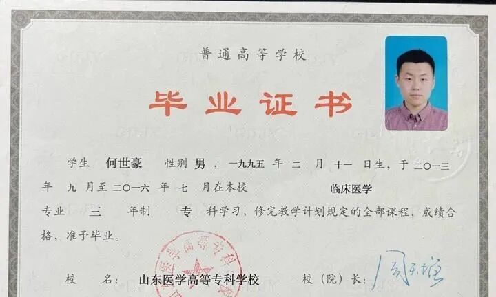 2016年,何世豪专升本成功,进入山东泰山医学院。