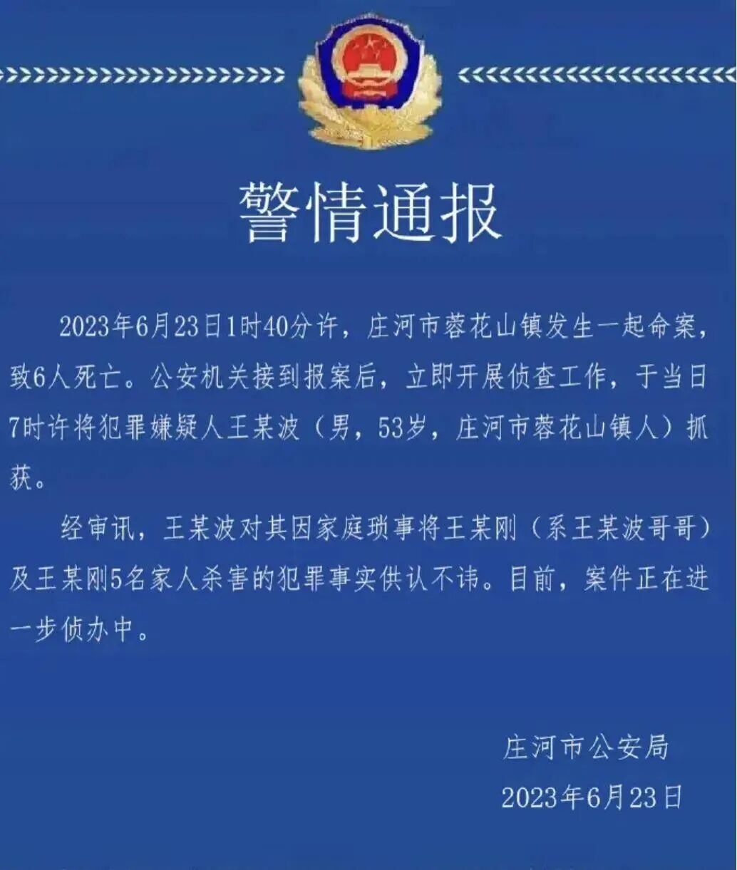 兄弟姐妹,应该是这世上除父母妻儿外最亲的人。这世间,有很多不计个人得失、甚至可以付出生命的手足情;从古至今,却也不乏因私利挥刀相向的兄弟。但是,像今天这样屠杀兄长满门,连七岁的侄孙子喊爷爷,都没能让他放下屠刀的人,却极为鲜见。6月23号,辽宁发生了一起重大刑事案件,一个53岁的村民在凌晨,持刀潜入同村58岁的兄长家中,将兄长一家6口人全部杀害,现场惨不忍睹。案件地点在辽宁省蓉花山镇东义村王岭屯,案发时间23号凌晨1点多,此时已经夜深人静,大部分人都处于熟睡阶段。凶手特意挑选在这个时间点行凶,被害人既不防备,也难反抗,有可能在睡梦中就一刀毙命。显见凶手灭门之意已决,根本没留半分余地。更恐怖的是,凶手杀人后还录下案发现场血腥视频,上传本村的微信聊天群:只见视频中鲜血流淌一地,六人横卧血泊中,简直无法直视。最可怜的是一个小小的孩子,也就六七岁样子,趴在地上一动不动,显然已经气绝。凶手站在尸体中间,一边记录下这堪比人间炼狱的一刻,一边嘴里还得意的叫嚣“看见了吗?一个也没放过!”普通人看见如此血腥场面,恐怕腿都要吓软了,更别提在六具尸体间,淡定录视频一分多钟,凶手之凶残、冷血令人发指。案发后,被害人邻居透露,曾有人凑近看了一眼,几具尸体头和脖子是分开的,现场惨烈无比。![]()