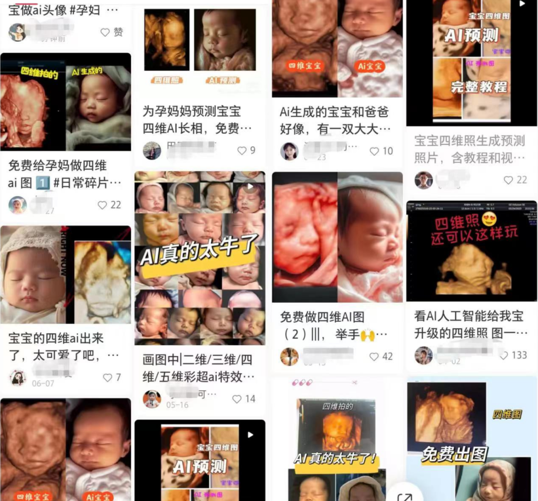 最近市面上有个ai项目比较火,只要一张四维彩超图,就能生成宝宝出生的图,这项目根本没有一点准确性,只是满足孕妇,准妈妈好奇心,想看看孩子出生时怎么样,可以理解,我是过来人,对马上出生的孩子,父母还是比较期待的,所以这项目爆火了。