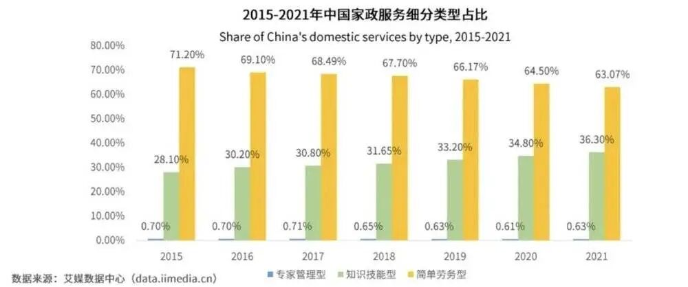 正因为家政行业一直以来的从业缺口过大,且专家管理型极少,仅仅只有0.6%~0.7%的占比。