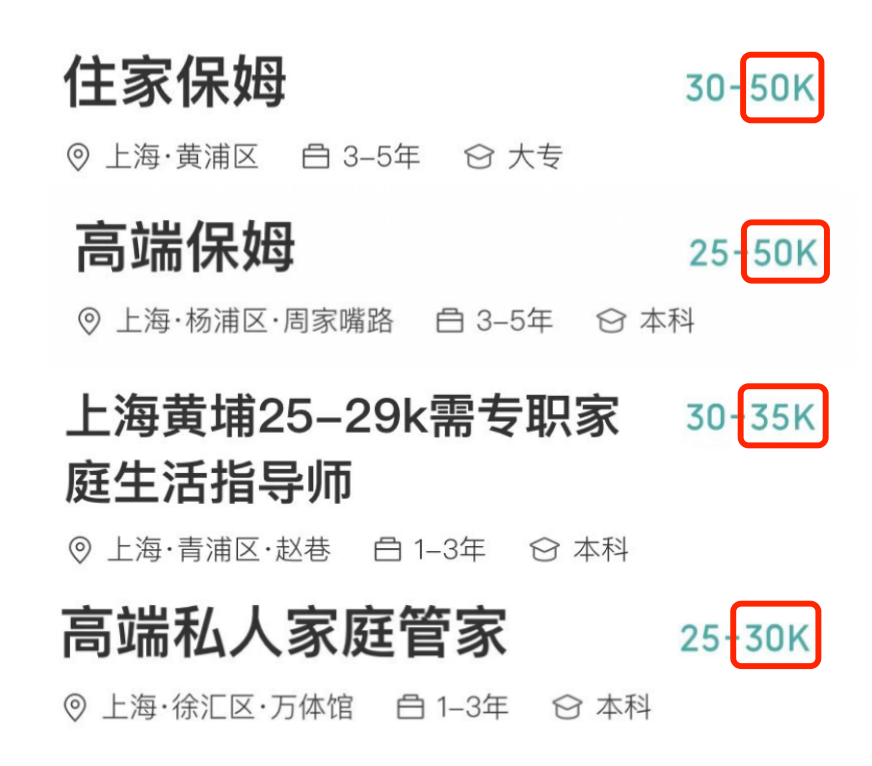 而招聘网站上的上海住家阿姨,薪资完全不低于现在的大厂。