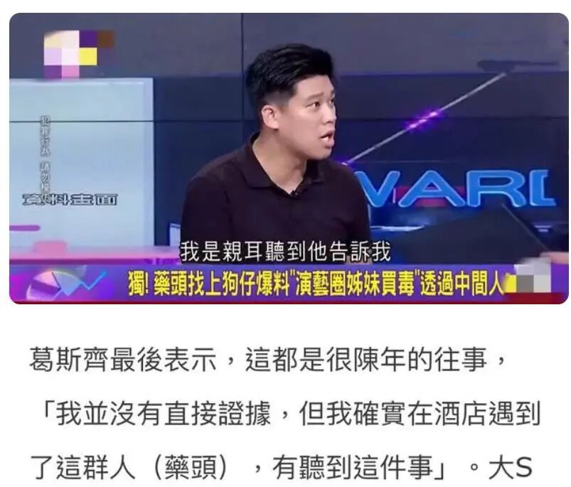葛斯齐透露他曾在酒店门口见过这些药物贩子,他们纷纷说他们认识大小S,明白这对娱乐圈的姐妹有过“这样的行为”。
