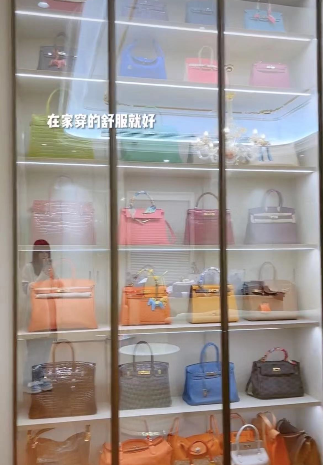 衣帽间里设有一个专门的柜子用来储藏爱马仕的手包,这种豪华程度令人叹为观止。