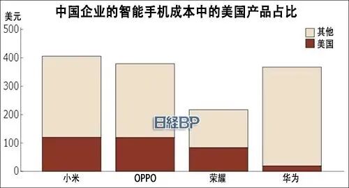 此外该机构的调查分析结果还显示,OPPO 和荣耀的手机中美国企业的产品也占到成本的 3-4 成,只有华为美国产零部件占比较低。