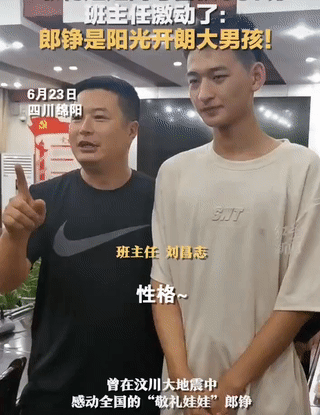 这一消息,不仅让他自己感到惊喜,也让关心他的亲人和老师们激动不已。甚至,连央视,新华社等头部媒体都争相报道,祝贺这个少年在高考中斩获优异的成绩。2008年5月12日14时28分04秒,一场8.0级大地震导致近7万人遇难,1.8万人失踪。大地颤抖,山河同悲。那一年的伤痛,就像一把尖刀,狠狠地划在了中国的土地上,也划在了无数华夏儿女的心中。但,悲恸之下,那些感动人心的故事,也一直完好地保存在每一个人的心中。2008年5月13日早晨,距离地震已经过去了十几个小时。此时,这里成了所有中国人关注的焦点,无数人的目光,都在紧张地等待这里的最新消息。激动的杨卫华找到了附近的战士,刨开沙砾和土堆,经过两个小时的艰难奋战,孩子被救了出来。小小的他,很是勇敢,尽管被抬出来的时候,他浑身是伤,多处骨折,但他全程没哭没闹,咬牙坚持着。面对营救他的解放军叔叔,他甚至举起了手,向他们敬了一个标准的礼。此时的杨卫华,凭着当记者的敏感,拍下了这感人的一幕。就是这一张照片,深深地刻在了人们的脑海里,也让郞铮被大众熟知,人们亲切的叫他“敬礼娃娃”。在他眼中,郞铮是个聪明上进、开朗大方的男孩,尽管高中的生活学习很紧张,但他依然不会落下体育锻炼,他酷爱篮球,各方面的发展都十分均衡。![]()