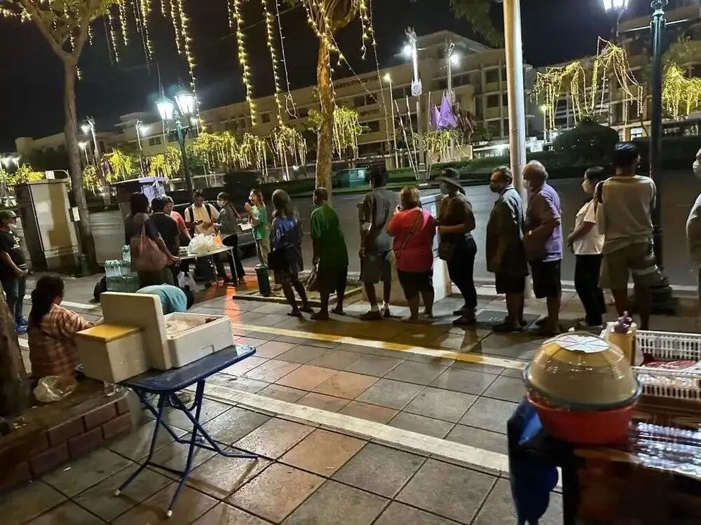 △ 泰国王宫外,人们在领取免费的晚餐。(图源:时代周报记者 刘沐轩摄)