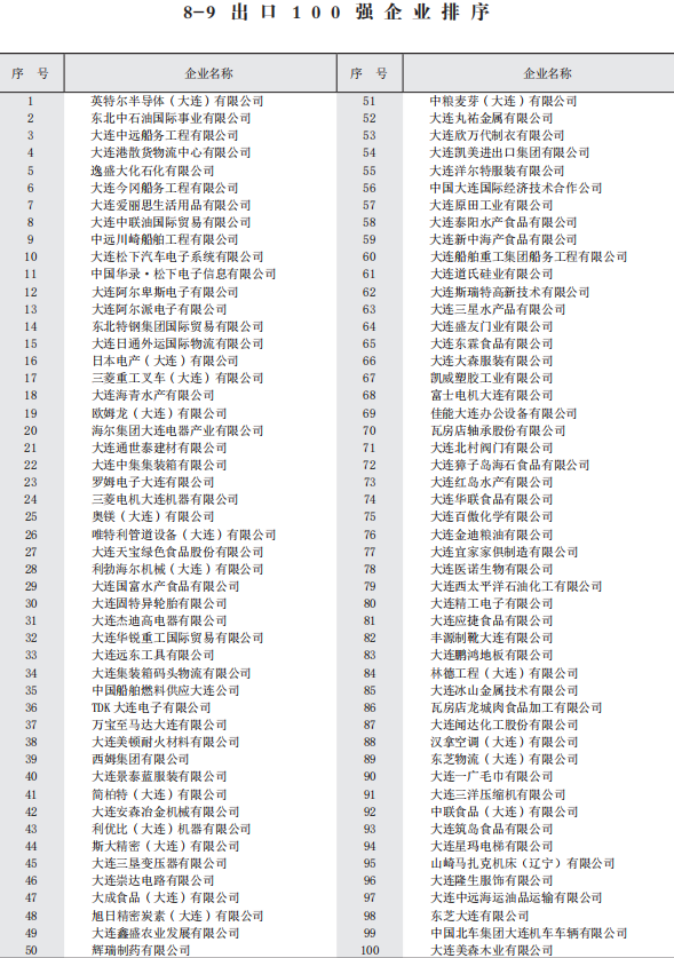 从外贸出口情况看,2007年,在大连出口企业50强中,第3、第5、第6、第8、第10位还是日资企业。但到了2018年,出口企业前10名里,日资企业的排名已经下滑至第7、第9、第10位。