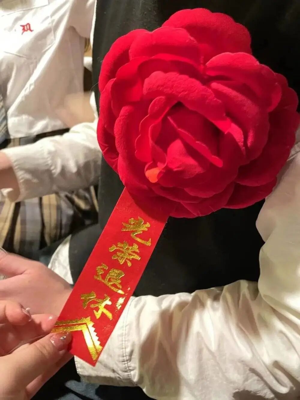 绶带是早就挑好了的款式。“有一次和朋友逛服装店看到这个绶带,本来写的是‘宇宙第一大美女’,last day用的是朋友帮我订制的离职版本。”
