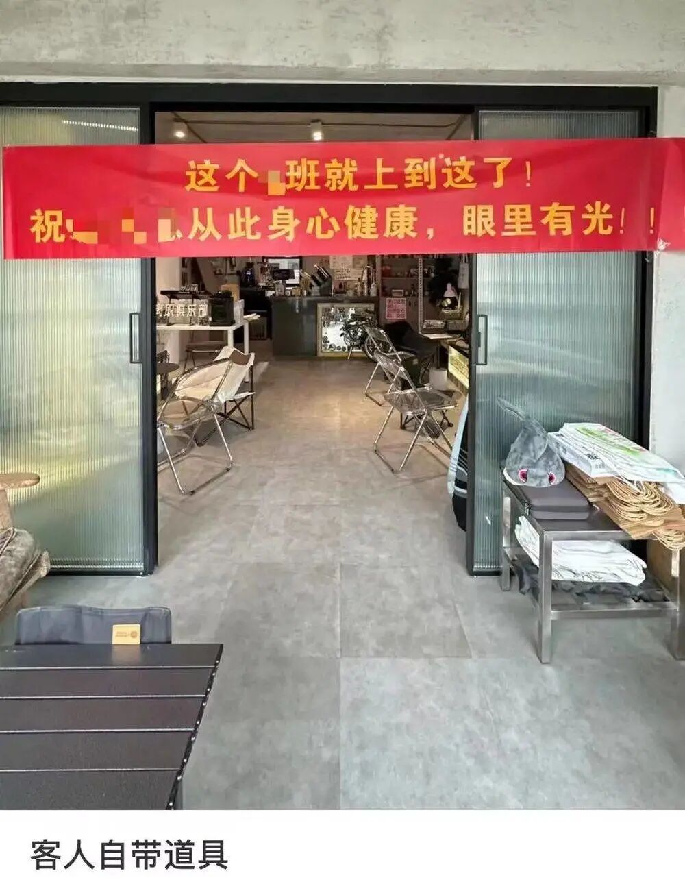 客人自带3米横幅来店里庆祝离职 图源:离职俱乐部 WORKDAY CLUB