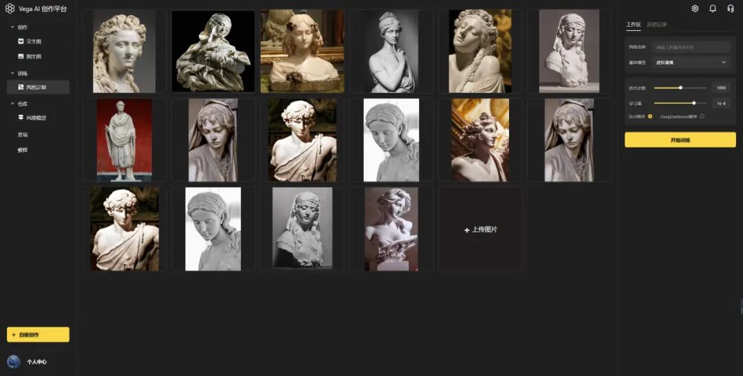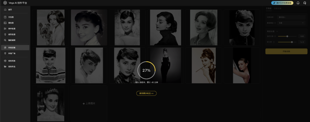 4.点击“开始训练”,等待生成(用时大概0.5-1小时),等待时间内可以进入其他页面进行操作,训练完成后会有弹窗提示。