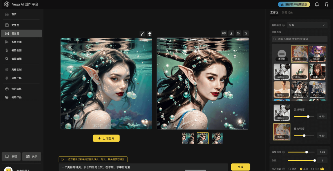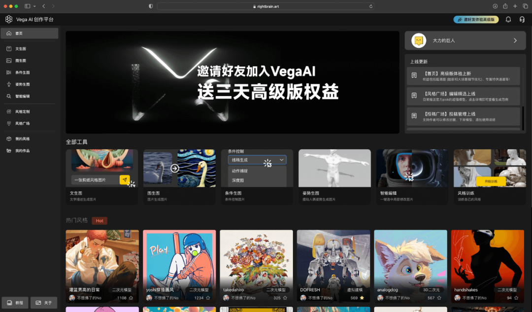 今天为大家介绍一款上手非常简单的ai绘图工具,对AI小白十分友好,关键还是免费的——Vega AI平台 www.rightbrain.art(单纯私人分享,右脑科技应该考虑给我点广告费)。