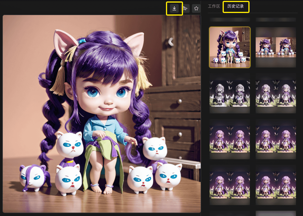 2.生成的图忘记下载不要紧,历史记录里有做过的图片,可以再次查看下载;