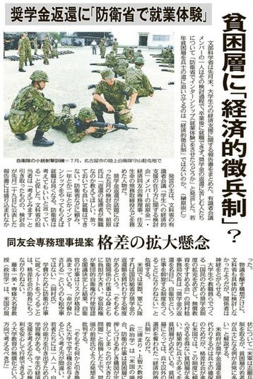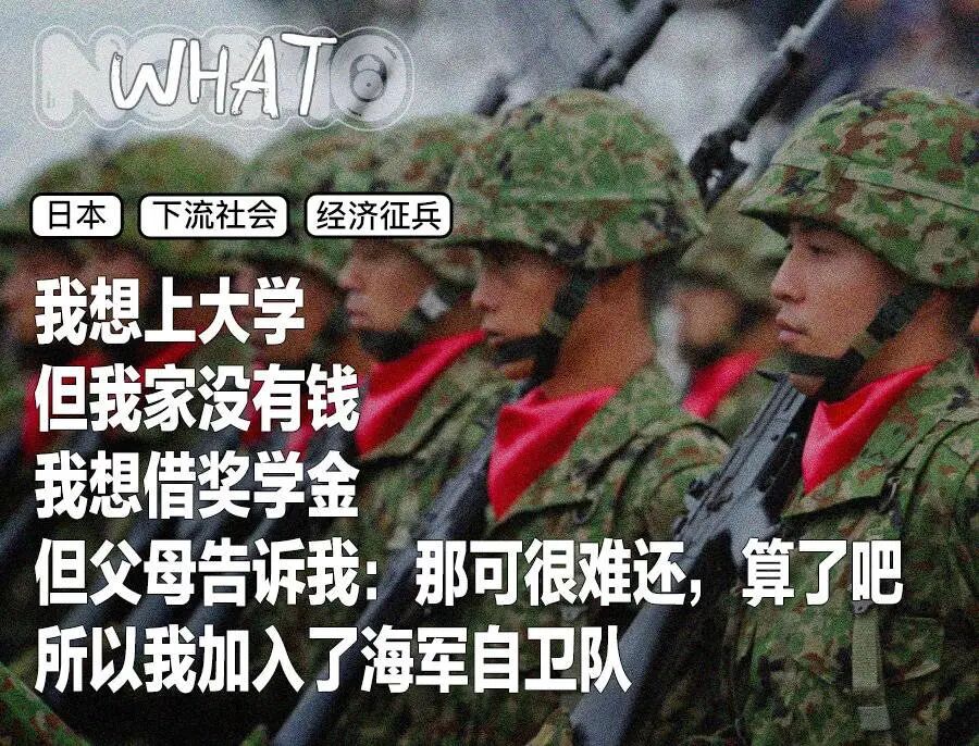 日本作家、自由记者布施祐仁在其作品《经济征兵制》中说,日本防卫省早就发现了征兵制中的贫富差距。