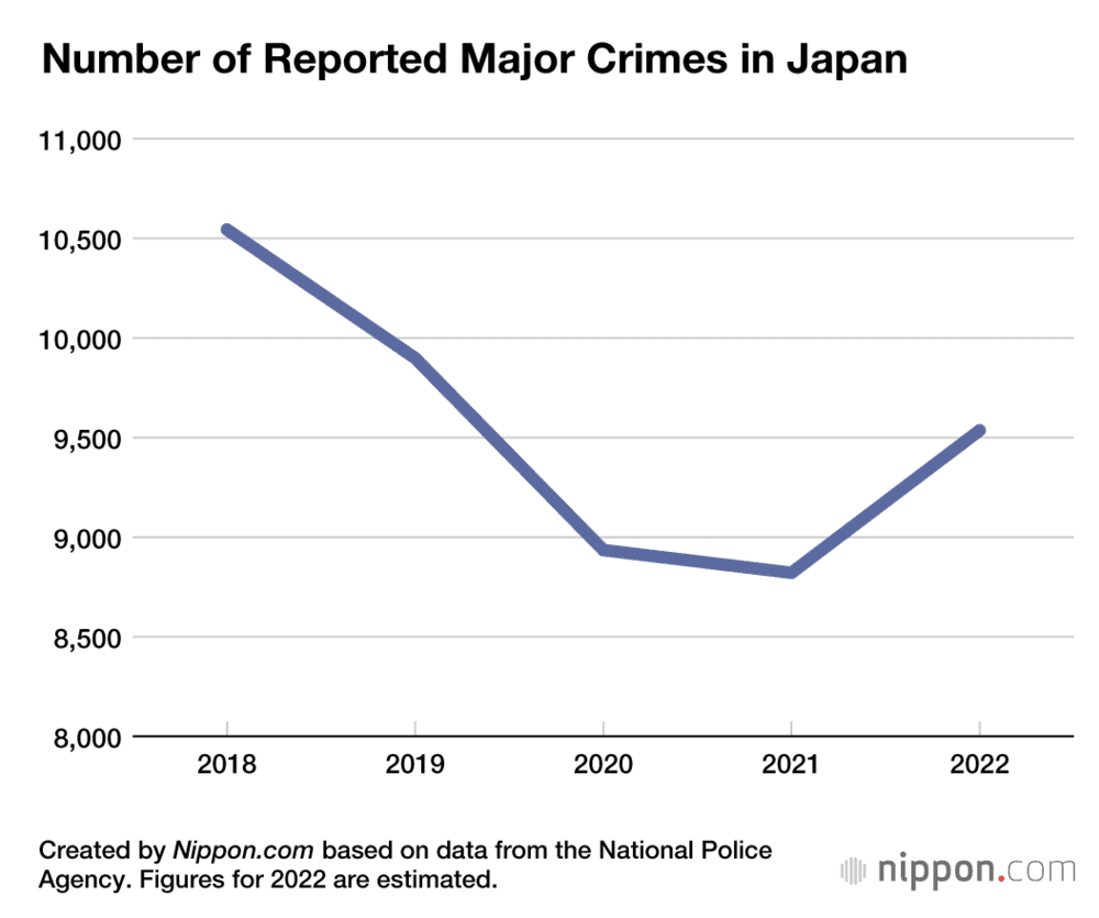 日本国家警察厅在对2022年日本犯罪统计数据进行初步总结后发现,2022年报告的犯罪数量同比增长了5.9% ,达到601389起——这是日本20年来首次出现同比增长。