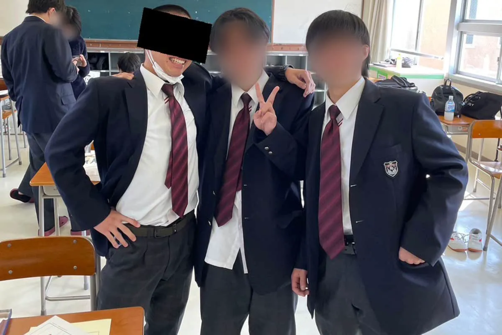 2023年3月,渡边直杜(黑框者)在高中毕业前跟朋友合影