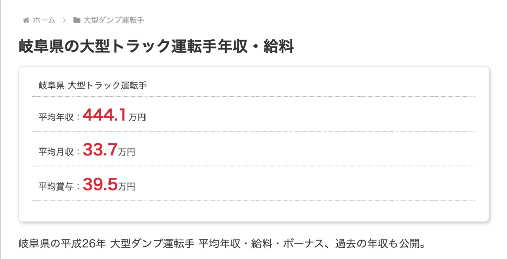 2014年岐阜县货车司机的平均年收入为444.1万日元(现约合22.25万元人民币),而当年的日本收入中位数为450万日元(现约合22.55万元人民币)。