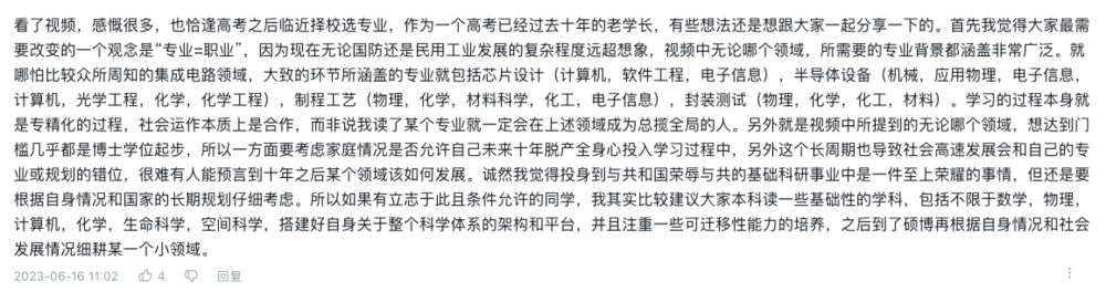 视频并不是全面的,也很难做到全面,而高考报考与科研理想,则是更为复杂和私人的选择,甚至不该有理性的过分介入。