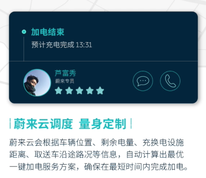 事实上,早在 2018 年,中国智能电动车公司蔚来,就用真实的人,通过“一键加电”这种途径,打通了“替您补能”的服务闭环。用户只需在 APP 上下单,然后耐心等待服务专员到来即可。“加电小哥”会严格遵照云端大数据计算出的最佳补能手段,或是开去充电,或是去换电站换电,或是开着奶爸车上门充电。