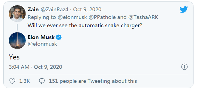 在回复一位推特热心网友的提问时,老马描绘了这样一种未来出行场景:坐进特斯拉,说出要去的地方,车会自动行驶到该地点。随后,你去上班、购物、打网球,车会评估当前电量状况和后续出行需求,自动寻找最近的可用充电桩,开过去,停进专属车位,充电盖打开,充电线自动插进充电口开始补能。结束后,充电线自动拔出归位,车辆自动驶离。