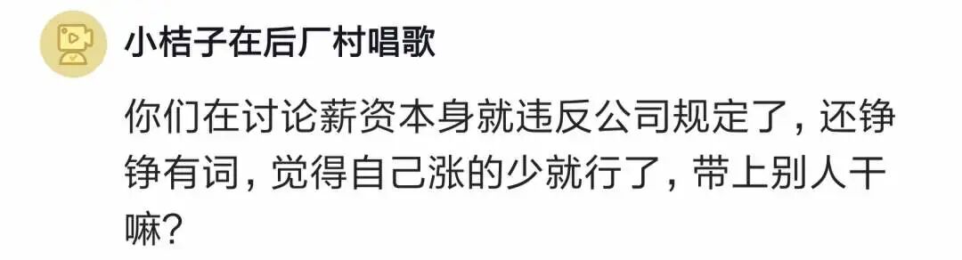 还有人质疑,人力都不对薪酬保密负责了?讨论薪资本身就违反公司规定了,还振振有词,觉得自己涨得少就行了,带上别人干嘛?