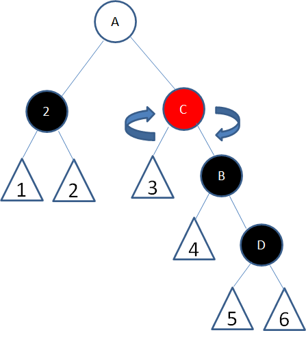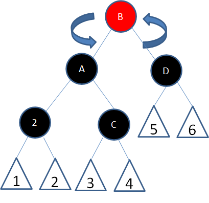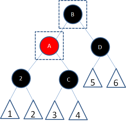 接下来,我们让结点B变为黑色,结点A变为红色: