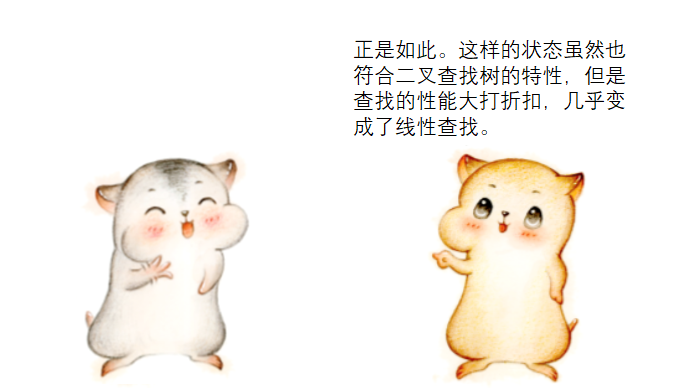 接下来我们依次插入如下五个结点:7,6,5,4,3。依照二叉查找树的特性,结果会变成什么样呢?